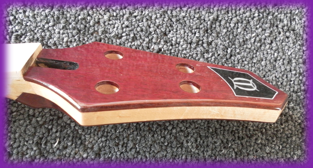 Neck has 7-laminates consisting of maple, brazilian cherry, maple on each side of a tapered purpleheart center laminate.