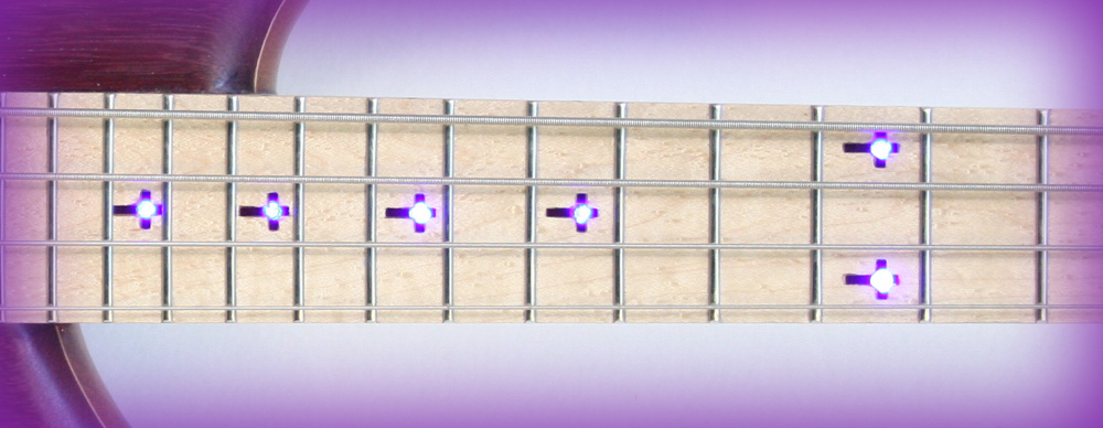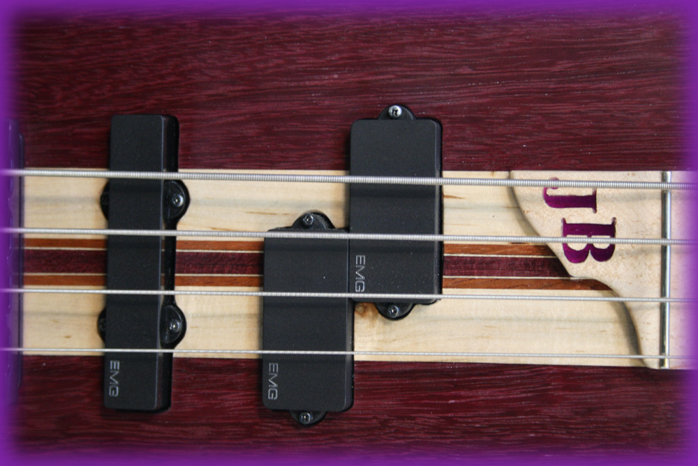 Body has 5-laminates which consists of a Mahogany core with a super thin layer of maple on each side and finally a Purpleheart top and bottom laminate.